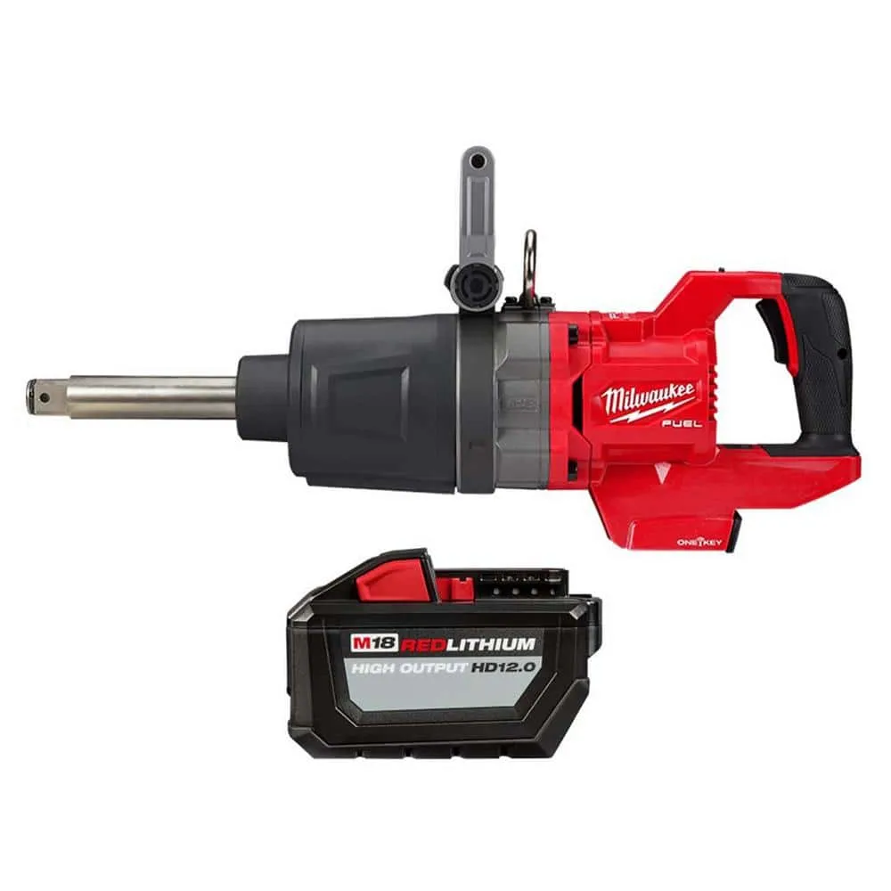M18 FUEL 18V Lithium Ion Brushless Cordless 1 in. Impact Wrench Extended Reach D Handle and HIGH OUTPUT 12Ah Battery