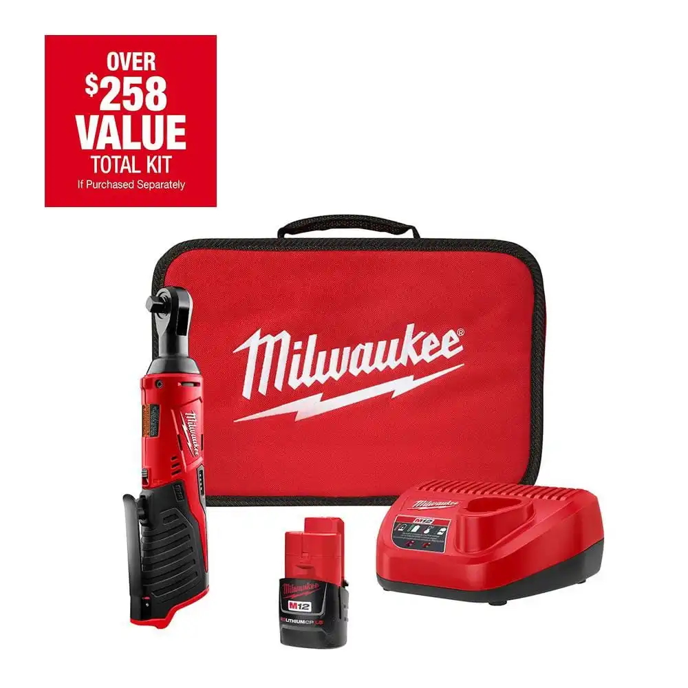 M12 12V Lithium-Ion Cordless 3/8 in. Ratchet Kit with One 1.5 Ah Battery, Charger and Tool Bag