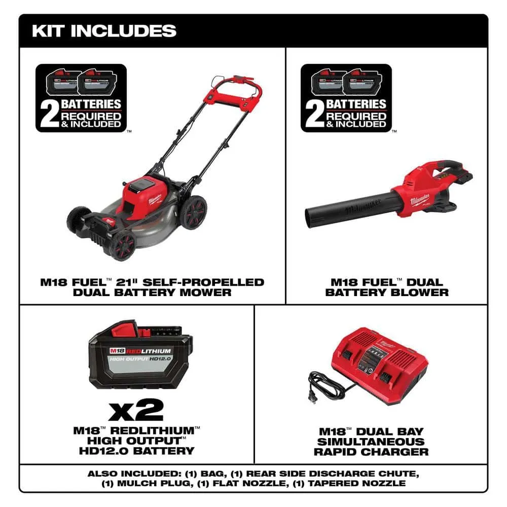 M18 FUEL Brushless Cordless 21 in. Walk Behind Self-Propelled Mower with (2) 12Ah Battery, Charger & Dual Battery Blower