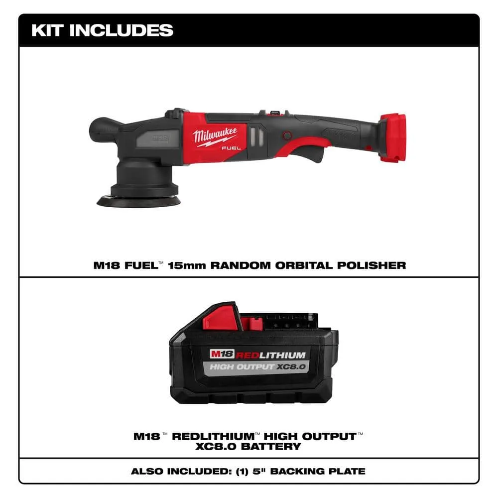 M18 FUEL18V Lithium-Ion Brushless Cordless 15MM DA Polisher (Tool-Only) w/HIGH OUTPUT XC 8.0 Ah Battery