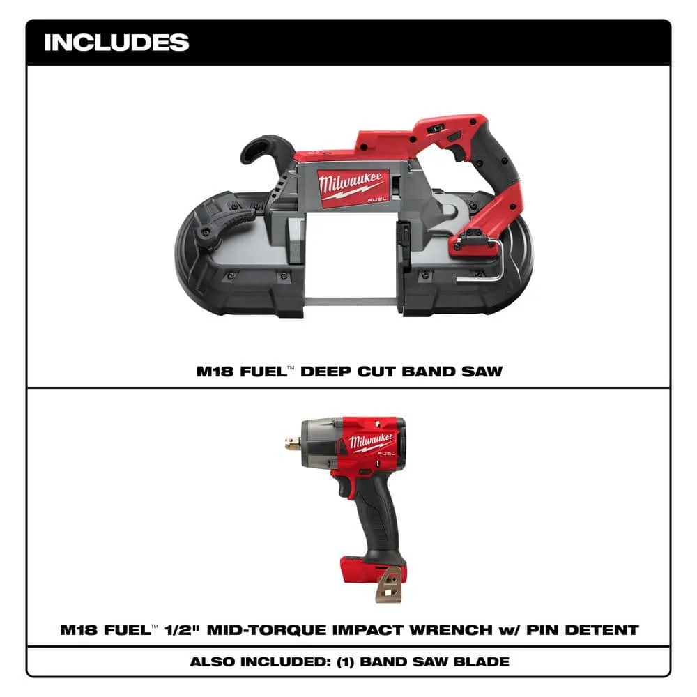 M18 FUEL 18V Lithium-Ion Brushless Cordless Deep Cut Band Saw (Tool-Only) w/Mid Torque 1/2 in. Impact Wrench