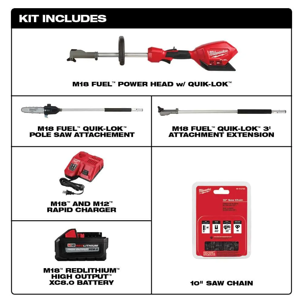 M18 FUEL 10 in. 18V Lithium-Ion Brushless Cordless Pole Saw Kit with 8.0 Ah Battery and 10 in. Saw Chain