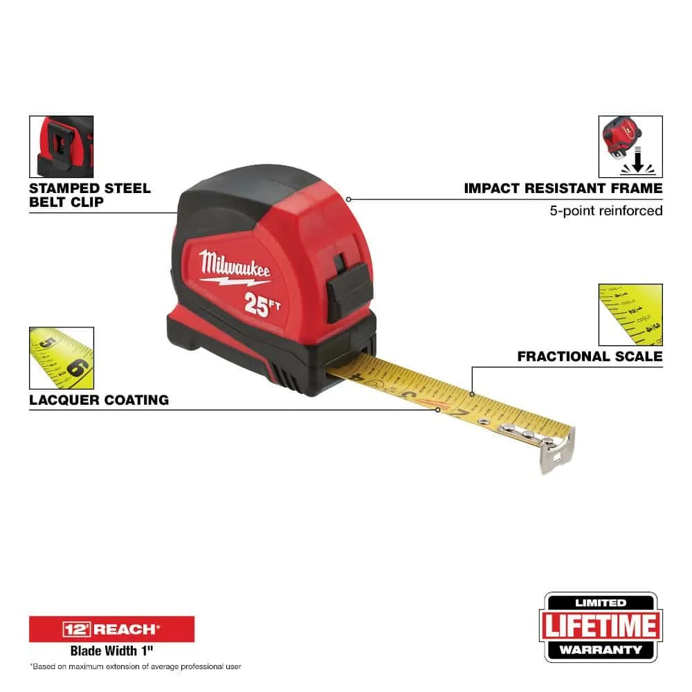 Compact 25 ft. SAE Tape Measure with Fractional Scale and 9 ft. Standout