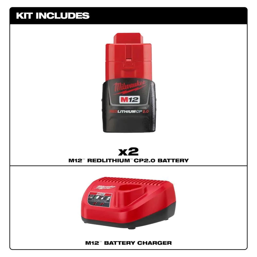 M12 12V Lithium-Ion Compact 2.0 Ah Battery Pack (2-Pack) Starter Kit with Charger