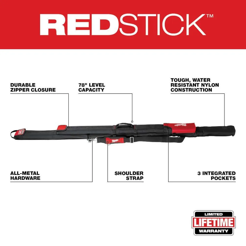 description: The 78 in. Storage Bag includes a 78 Milwaukee Box level, 48 Milwaukee Box level, 24 Milwaukee Box level a Milwaukee Block Torpedo. Made from tough, water resistant nylon with all metal hardware and durable zipper closures to ensure ultimate durability on the jobsite. Includes 2-integrated carrying handles that can also act as hang handles for easy transport and storing. Includes external storage and integrated tool loops for additional storage of tools and/or building materials.depth: 78 inwidth: 3.5 in