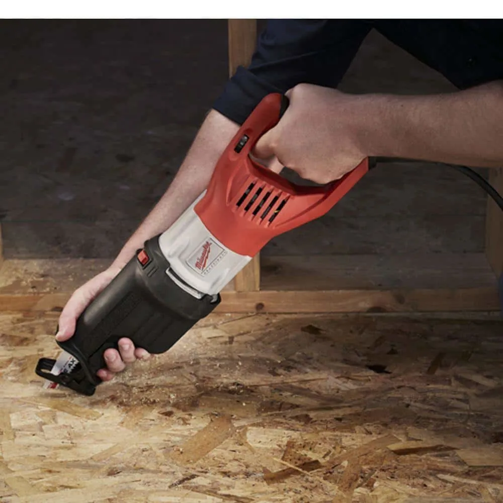 description: The Milwaukee 15 Amp Super SAWZALL Reciprocating Saw uses Constant Power Technology to maintain constant speed and power under load for unmatched cutting performance. The 15 Amp motor provides the industry's highest overload protection. A patented, gear-protecting clutch extends gear and motor life by absorbing high impact forces caused by sudden blade lock-ups.depth: 19.5 inheight: 5.8 inwidth: 3.75 inweight: 9.8 lb