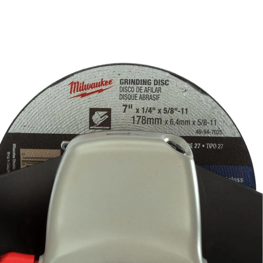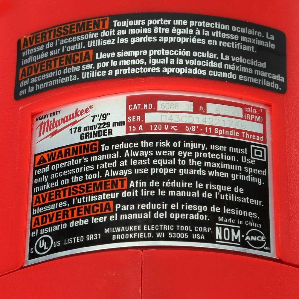 description: Designed for heavy-duty use in demanding conditions, this 15 Amp, 4.2 HP large angle grinder from Milwaukee maintains speed under load to power through tough jobs. Undeterred by industrial-grade materials, this 7/9 in. grinder produces up to 6000 RPM with enhanced circuitry to prevent overloading or overheating. A vibration-inhibiting side handle affords users with stability and leverage to conquer toilsome cutting and grinding tasks. Keep this machine in running mode with a trigger-positioned lock-on switch.depth: 6.93 inheight: 23.82 inwidth: 9.29 inweight: 18.11 lb