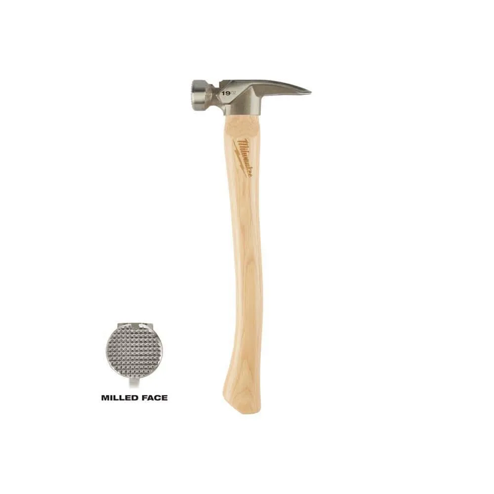 description: Our 19 oz. Milled Face Hickory Hammer is designed for our carpenters and craftspeople with a precision balanced design and naturally shock absorbing American Hickory handle to give you the Best Driving Performance. The wood handle framing hammer has a magnetic nail set in the metal head to help you work more productively. It also s an axe-style curved handle that gives you a better, more comfortable grip on the hammer as well as an anti-ring claw.depth: 16.063 inheight: 5.74 inwidth: 1.496 in