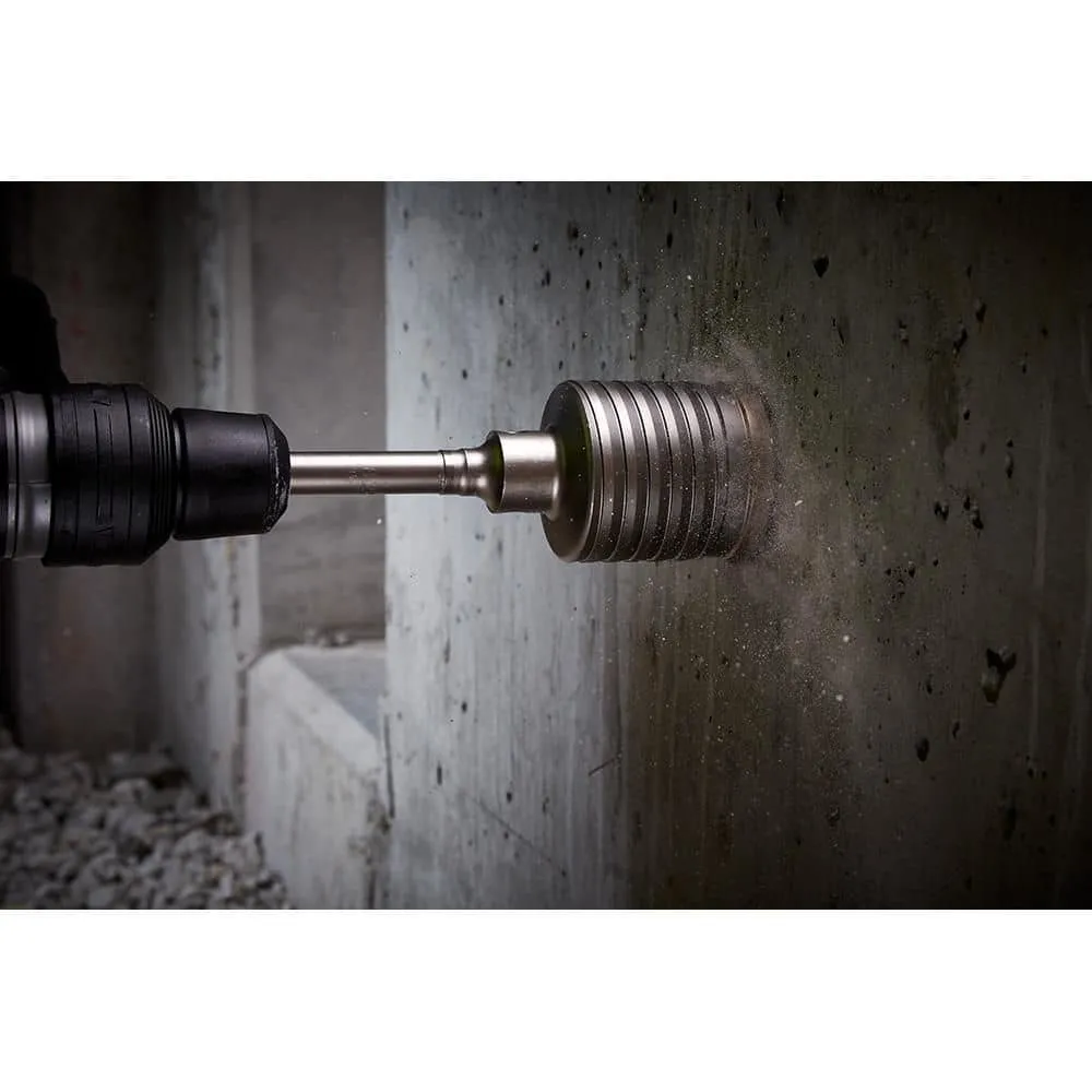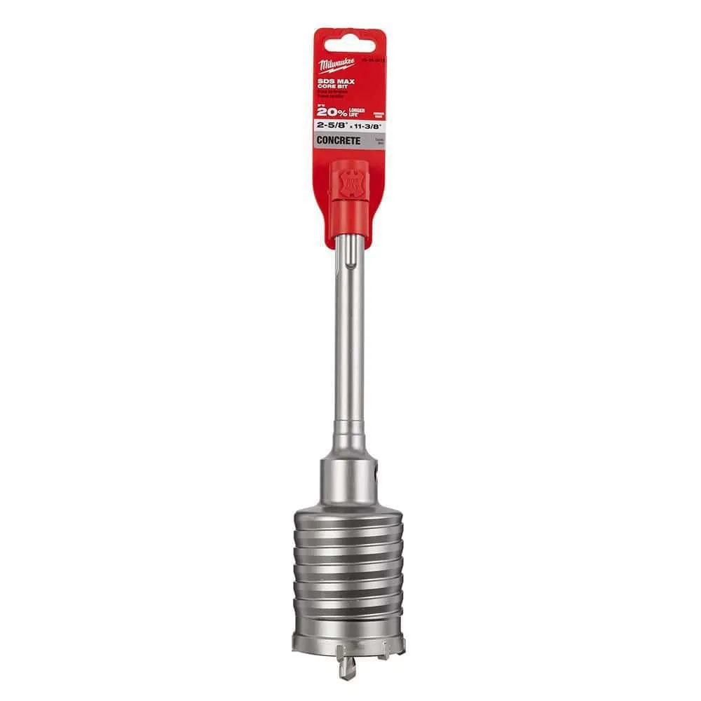 description: Milwaukee's one piece carbide tipped core bits are ideal for drilling large holes in brick, block, and concrete. The asymmetric tooth pitch with alternating tooth geometries for up to 20% faster drilling speeds. The one piece design maximizes energy transfer and the thick wall core body is durable in large hammers. The fluted core exterior minimizes friction loss and removes debris faster. Core bit cut with the outer cutting edge only. The inside core must be removed to allow for deeper hole drilling applications beyond 3\depth: 3