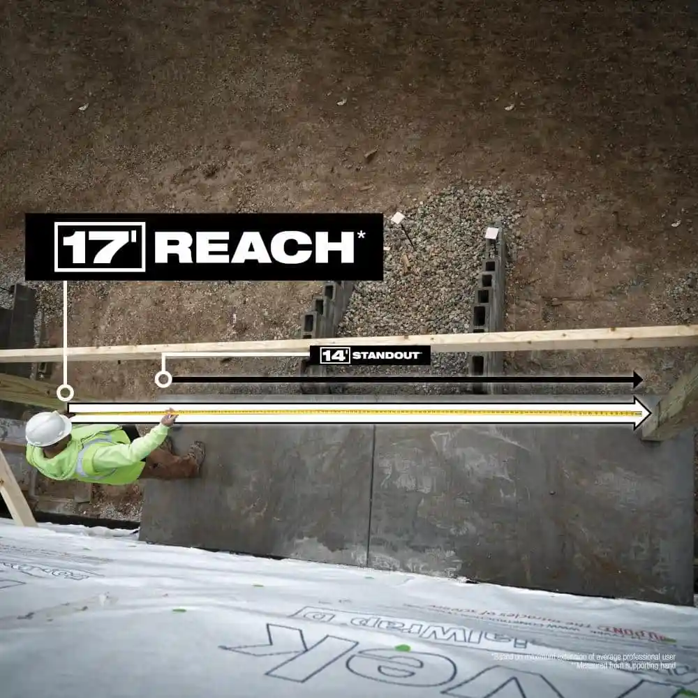 description: The Milwaukee 25 ft. Wide Blade Magnetic Tape Measures have the longest reach and straightest standout in the industry. Users can reach further on the jobsite with up to 17 ft. of reach to take long measurements on their own. The Milwaukee blade design provides the straightest standout, reducing blade arc for efficient and accurate measuring. A magnetic hook easily attaches to EMT and steel studs. The tape measures are wear and impact-resistant with nylon bond blade protection and an additional anti-tear coating on the first 6 ft. of the blade, reducing tape tear. Built to withstand the jobsite, the measuring tapes are constructed with a 5-point reinforced frame for impact resistance.depth: 2.35height: 3.1width: 1.3