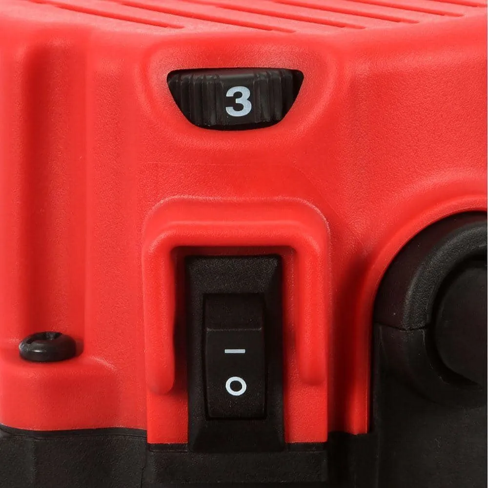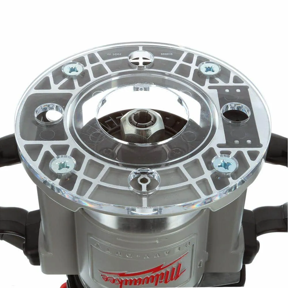 description: The Milwaukee Fixed-Base Production Router has a powerful 15 amp, 3-1/2 max hp EVS motor. For a consistent, quality finish when using the tool, you have the ability to precisely match the tool's RPM to the bit diameter using the 36-position speed dial. For controlled startups and reduced motor wear, the router features a reliable electronic soft start. It also has an exclusive linear height adjustment system with above-the-table access for fast and precise coarse adjustments to within 1/8 in. and 1/64 in. for micro adjustments. Being above the table eliminates the need for awkward, inconvenient adjustments, or an auxiliary router lift.depth: 10 inheight: 12.3 inwidth: 10.5 inweight: 14.78 lb