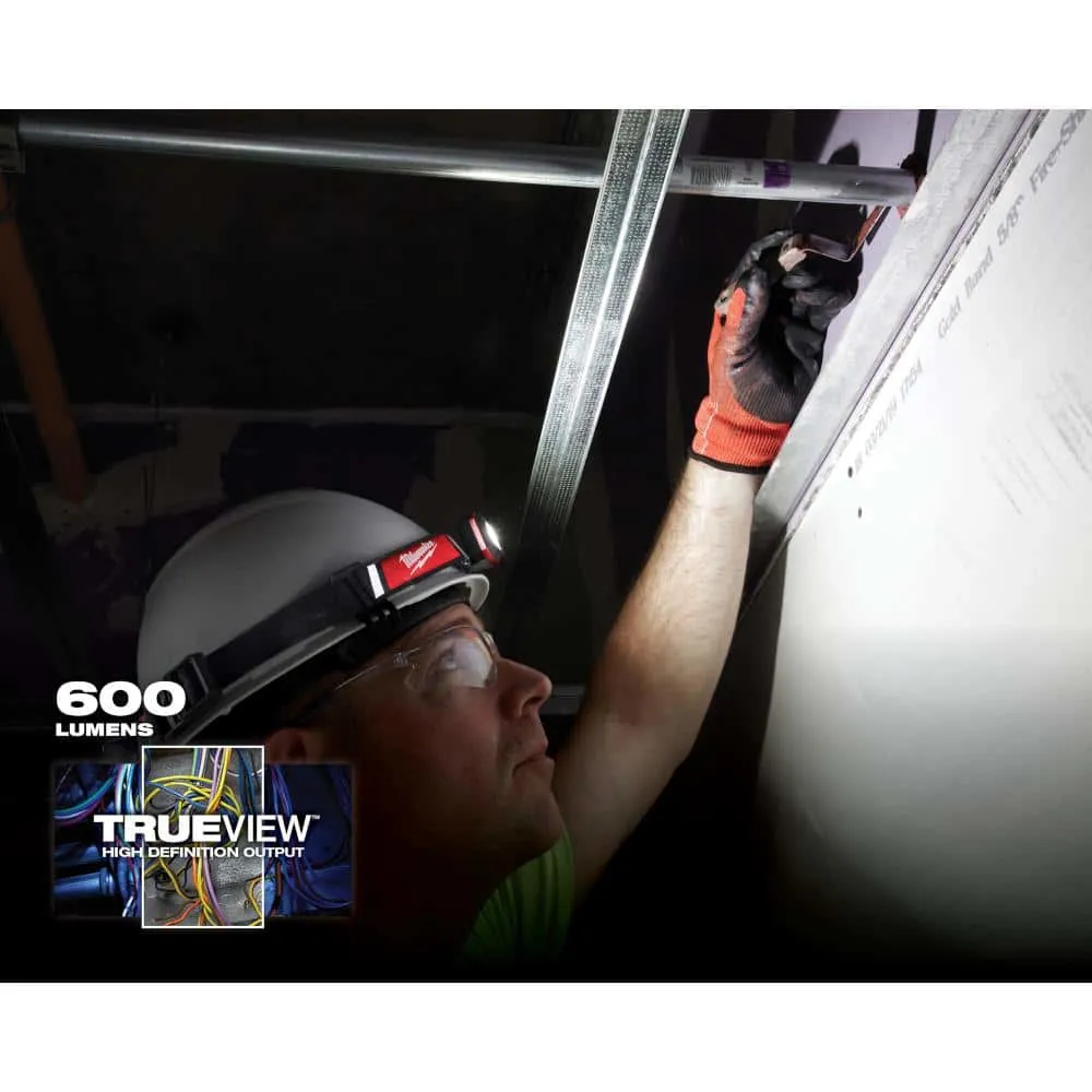 description: The MILWAUKEE USB Rechargeable Low-Profile Headlamp is powered by REDLITHIUM USB and delivers 600 Lumens of TRUEVIEW High Definition Output. The flood light headlamp features an ultra-thin light head that provides an unobstructed view with 125掳 of flood beam coverage. The rechargeable headlamp is designed with the battery pack in the rear for maximum maneuverability in tight spaces and a balanced design for all-day use. The hardhat headlamp is equipped with a sweat absorbing microfiber strap for comfort on bare heads and four included hard hat clips for secure connections on all hardhats. The Milwaukee headlamp has four light output modes: High, Medium, Low and Eco for 28+ hours of runtime to maximize light output or extend runtime. The clip on hard hat light is IP54 rated for water and dust resistance and can withstand up to 2M drops, surviving the toughest conditions on and off the jobsite. The USB Rechargeable Low-Profile Headlamp is powered by the REDLITHIUM USB 3.0AH Battery, providing all-day run-time, more recharges, and 3x faster charge time. The Milwaukee REDLITHIUM USB Battery can be recharged in the flashlight via Micro USB or swapped out with additional REDLITHIUM USB Batteries for virtually no downtime. The Low-Profile Headlamp is covered by a limited lifetime warranty.depth: 2.83 inheight: 1.42 inwidth: 1.22 inweight: .41 lb