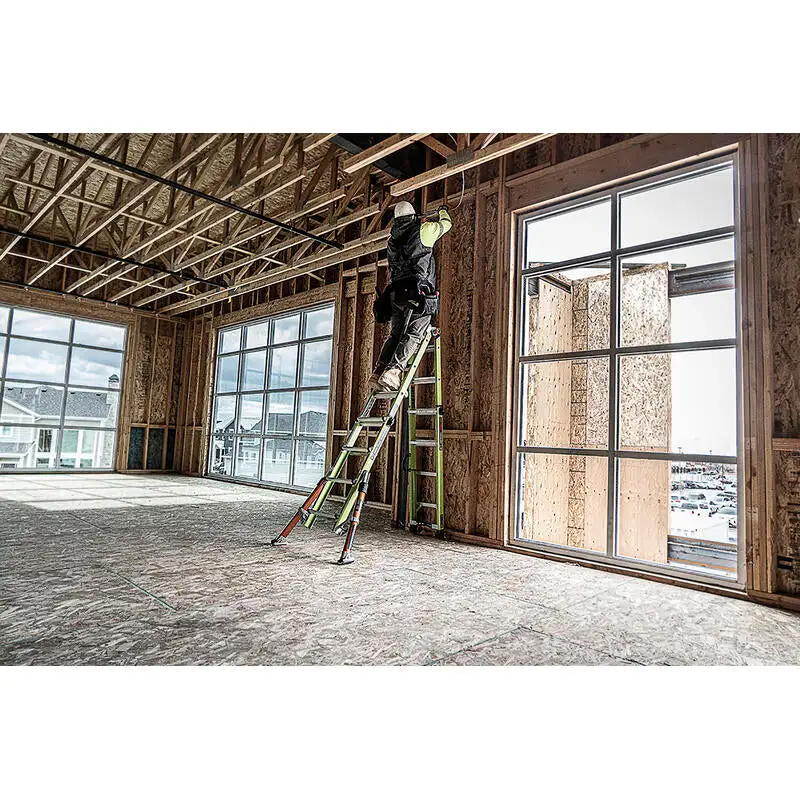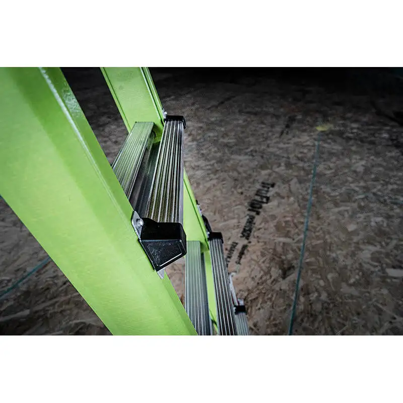 The extension side of the ladder is narrow enough to access tight spaces between wall studs, ceiling trusses and roof or attic access ports, and can be safely set up on poles or outside corners. The wall pad feet are designed for use on inside corners and flat walls without damage to the surface.