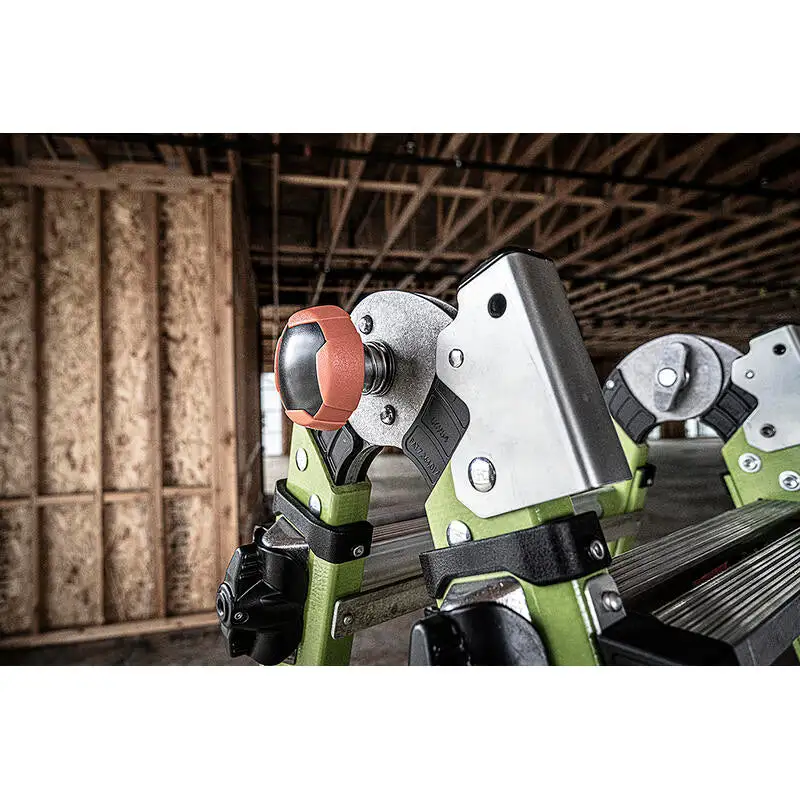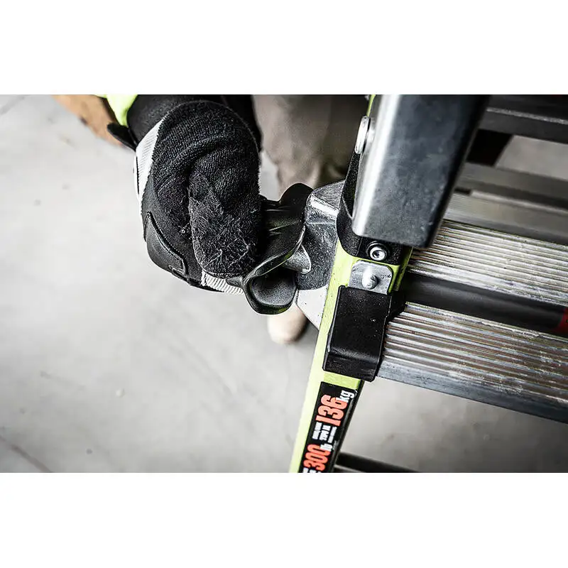 Grip and twist the Rapid Lock, and then slide the rails of the ladder to the desired size. Twist the Rapid Lock once more to lock the ladder in place.