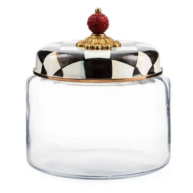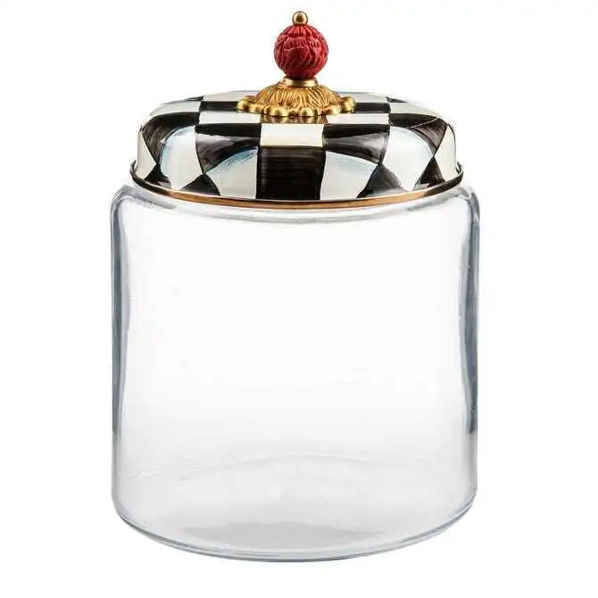Keep countertops tidy in MacKenzie-Childs style with the Courtly Check Kitchen Canisters. With our signature color-dragged black-and-white pattern on the hand-painted enamel lid, who could blame you for wanting to overhaul the whole pantry? Collect all three convenient sizes.