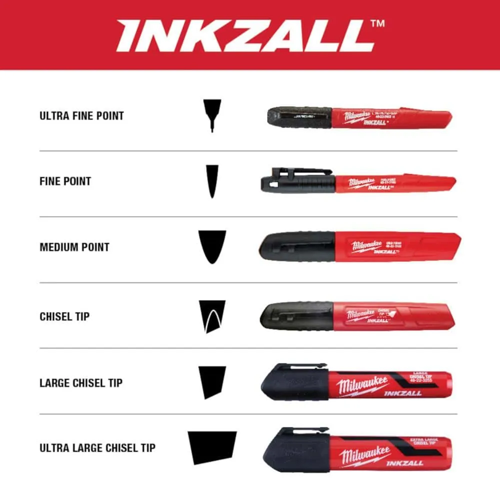 description: The 48-22-3104 Milwaukee Inkzall Permanent Markers are optimized for jobsite conditions. The durable tip is designed to withstand writing on rough surfaces such as OSB, cinderblock and concrete and writes through dusty, wet or oily contamination. The hard hat clip is designed to clip onto the brim of hard hats for easy access.