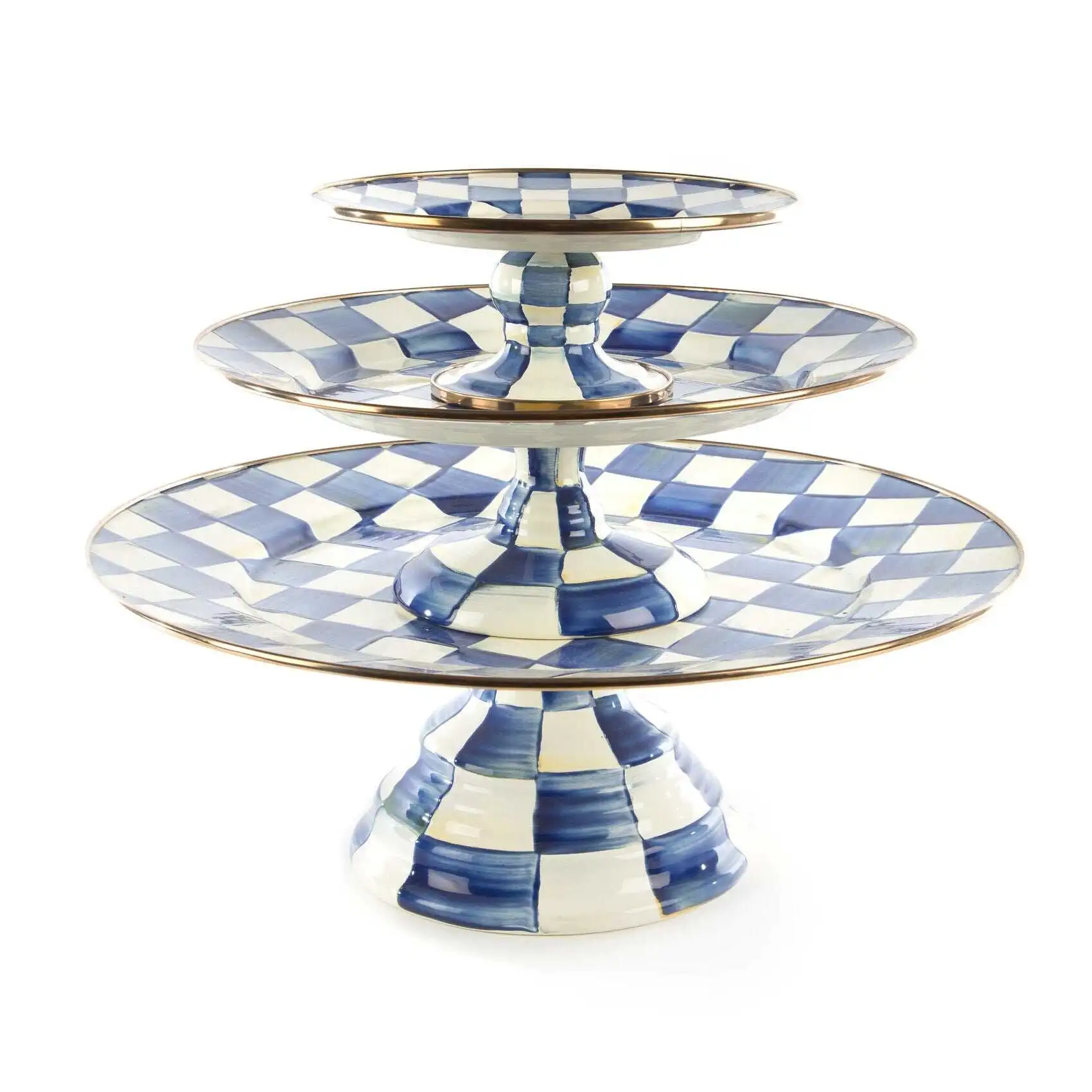 Luxury Royal Check Enamel Dining Pedestal Platter - Small