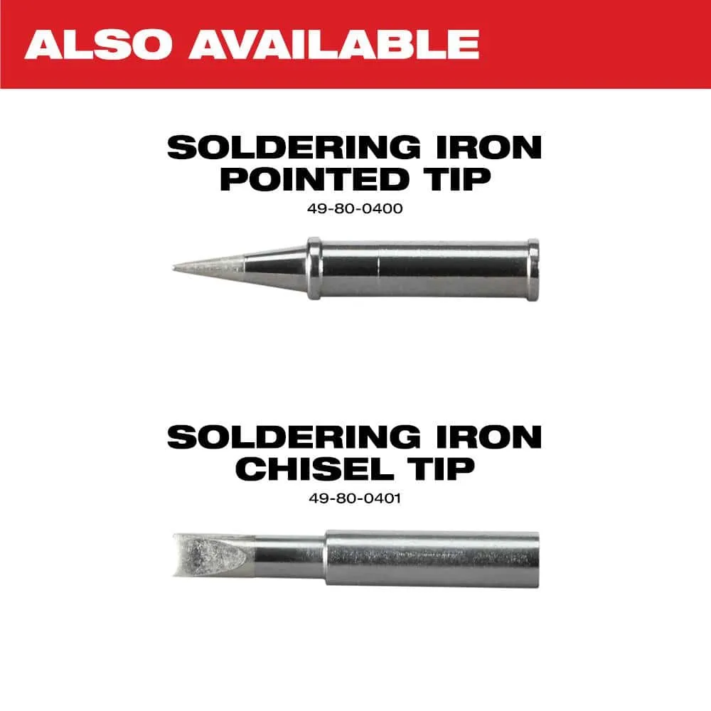 description: The M12 Soldering Iron delivers fast application speeds by reaching operational temperature in under 18 seconds and maintaining an optimized temperature throughout the most demanding applications. The heat indicator utilizes REDLINK Intelligence to notify users when the tool is ready-to-use and safe-to-store, eliminating the guesswork. The 3-stop pivoting head provides unmatched access by allowing users the ability to adapt the tool for the application and solder in more confined spaces. The M12 Soldering Iron powered by REDLITHIUM battery technology delivers up to 40 minutes of run-time on a M12 Compact Battery Pack.depth: 10.85 inheight: 1.385 inwidth: 1.136 in