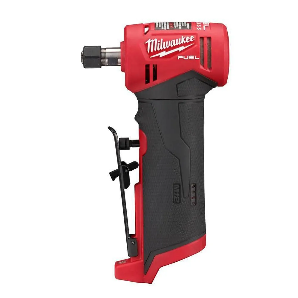 description: The Milwaukee 1/4 in. M12 FUEL Right Angle Die Grinder is the first cordless right angle die grinder that delivers the performance, size and speed professional service mechanics demand. The die grinder delivers 20% more power than pneumatic competition and features the Milwaukee POWERSTATE Brushless Motor Technology. The cordless die grinder provides users with up to .3 HP performance, best-in-class size to help fit in tight places, and offers users greater mobility and access. The M12 die grinder features a 3-Mode speed control and responsive variable-speed trigger giving users unmatched control.depth: 4.4 inheight: 7.8 inwidth: 2 inweight: 1.6 lb