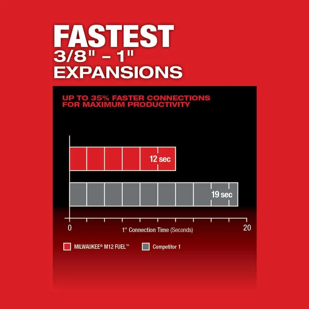 description: The Milwaukee M12 FUEL ProPEX Expander delivers the fastest 3/8 in. -1 in. connections. Utilizing an auto-rotating head mechanism, the M12 FUEL ProPEX Expander provides even expansions for the most consistent installations. The new ProPEX Expander Heads with RAPID SEAL provide the fastest PEX seal for less down time before pressure testing. Access tight locations to install tubing with the compact, right angle design for fast and easy installations. All-metal gears and an integrated metal frame deliver maximum tool durability on the job site. The POWERSTATE Brushless Motor delivers the fastest expansions, yet runs cooler with no wearable components. The REDLITHIUM 2.0 Compact Battery Pack delivers up to 20% more power and 2X more recharges than standard lithium-ion batteries, as well as best-in-class performance in extreme jobsite conditions. REDLINK PLUS intelligence ensures optimized performance and protection from overload, overheating and over-discharge. The onboard fuel gauge helps you monitor the charge more accurately, so there's less downtime on the job.depth: 3.75 inheight: 11.73 inwidth: 7.28 inweight: 4.50 lb