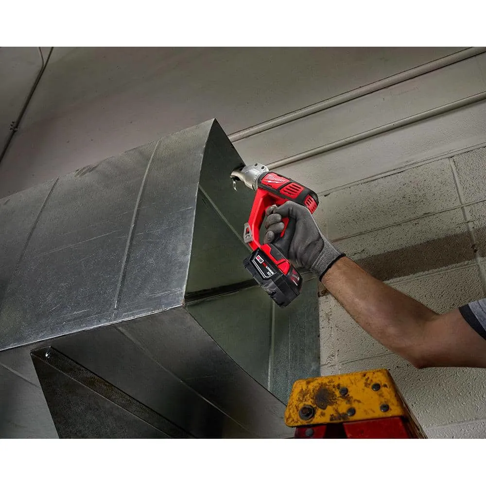 description: The MILWAUKEE M18 18 Gauge Double Cut Shear features a redesigned body and inline wrist design that maximizes control during use. These battery powered shears offer an 18 gauge steel capacity, replacing the need for hand snips, allowing users to get through more work in less time. The M18 18 Gauge Double Cut shears are optimized for making straight cuts. These cordless shears feature a 360 degree rotating head and a variable speed trigger that provide users with maximum control.depth: 2.5 inheight: 7.5 inwidth: 17.25 inweight: 5.6 lb