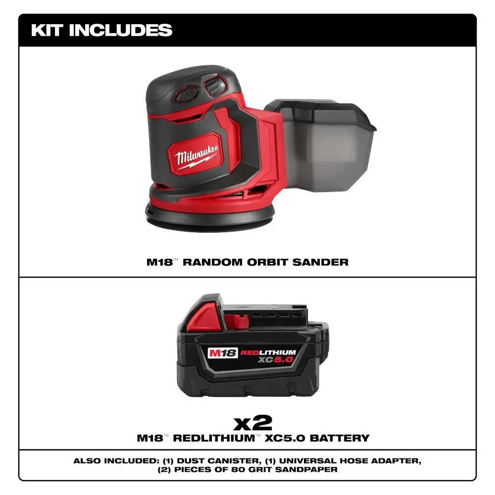 M18 18V Lithium-Ion Cordless 5 in. Random Orbit Sander with (2) M18 5.0Ah Batteries