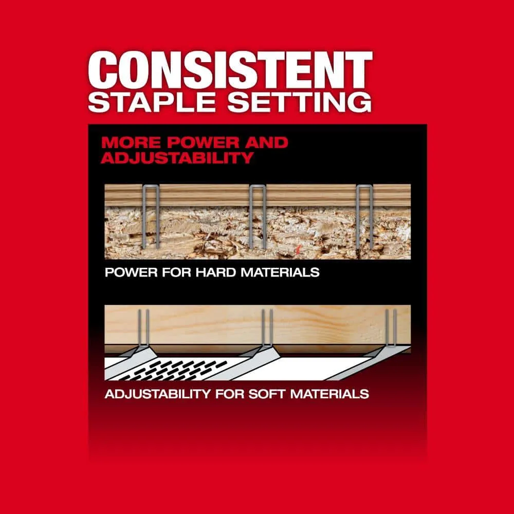 description: The Milwaukee M18 FUEL 18-Gauge ? in. Narrow Crown Stapler delivers peak productivity, providing users with unmatched stapling performance without the hassle of a compressor and hose. A nitrogen air spring mechanism gives this cordless staple gun power to consistently sink staples to the proper depth in hard materials with the ability to adjust to drive staples in soft materials without blowing through. The combination of a POWERSTATE Brushless Motor and REDLINK PLUS Intelligence provides an unmatched fire rate with zero ramp-up time, keeping users efficient throughout the day. This battery powered narrow crown stapler is compact and lightweight, giving users better access into tight spaces and limiting fatigue throughout the day. The M18 FUEL 18-Gauge 1/4 in. Narrow Crown Stapler delivers the pneumatic performance that professional carpenters and remodelers expect with the freedom and convenience of a cordless tool. The tool includes 2 work contact tips and a reversible belt hook.depth: 11 inheight: 11.34 inwidth: 3.4 inweight: 5.4 lb