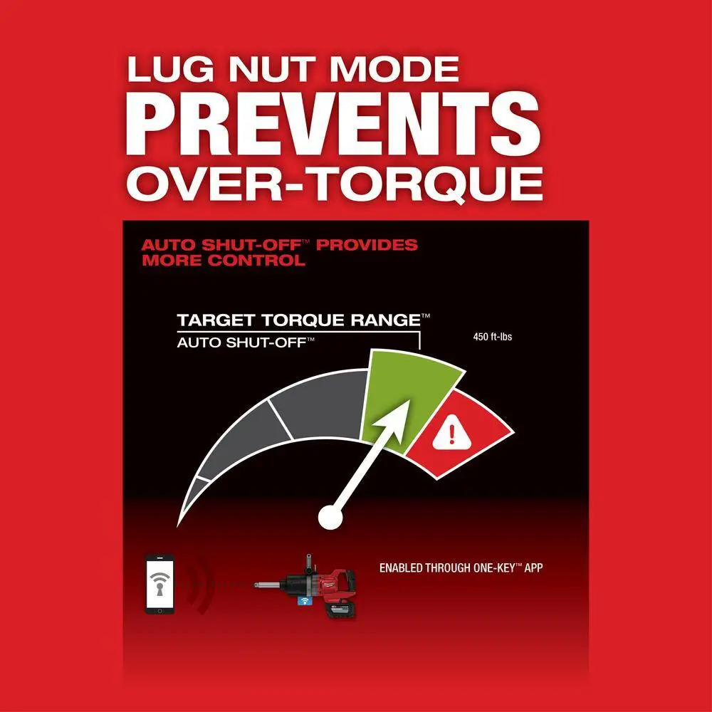 description: The Milwaukee M18 FUEL 1 in. D-Handle Extended Anvil High Torque Impact Wrench with ONE-KEY is the world's first cordless 1 in. D-Handle High Torque Impact Wrench. The POWERSTATE Brushless Motor delivers up to 2,000 ft. lbs. of nut-busting torque and 1,900 ft. lbs. of fastening torque, making this the world's most powerful cordless impact wrench, enabling users to complete the most demanding applications. With the runtime to remove and install up to 120 lug nuts on a single HIGH OUTPUT HD12.0Ah battery, the tool provides unmatched performance. Lug Nut Mode, which can be enabled through the ONE-KEY app, prevents the over-torque of lug nuts by automatically shutting off the tool, providing more control. The REDLINK PLUS Intelligence ensures users achieve maximum performance and protects the 6 in. extended anvil impact wrench against overloads, over-heating and over-discharge. A patented battery isolation system manages high frequency vibrations, enabling battery movement that prevents damage and ensures a constant connection between the battery and tool when in use. The 4-Mode DRIVE CONTROL provides users with greater control over the output speed and power of the High Torque Impact Wrench. The ONE-KEY Technology allows the user to customize, track and manage the impact wrench with the ability to set a repeatable torque output for maximum control.depth: 23.24 inheight: 7.75 inwidth: 5.12 inweight: 26.40 lb