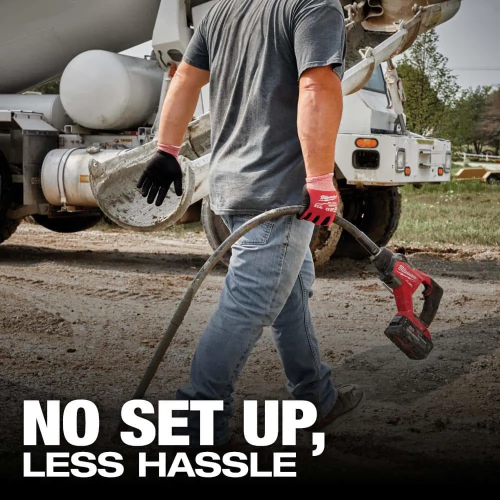 description: The Milwaukee M18 FUEL 8 ft. Concrete Pencil Vibrator generates up to 1.8 peak HP, with no setup and gives users the ability to consolidate 20 yds3 of concrete per charge. The M18 FUEL 8 ft. Concrete Pencil Vibrator generates 1.8 Peak HP, which is 3-times more powerful than competitive cordless pencil vibrators for concrete, all on the M18 Cordless System. The POWERSTATE Brushless Motor delivers maximum sustained power and 12,500 VPM for optimal consolidation with a variable speed trigger. REDLINK PLUS Intelligence ensures unmatched levels of performance and protection. The M18 REDLITHIUM HIGH OUTPUT XC6.0 Batteries (not included) deliver users 50% more power while running 50% cooler than M18 REDLITHIUM XC Batteries and are compatible with 250+ tools in the M18 System.depth: 105 inheight: 6.5 inwidth: 3.25 inweight: 12 lb