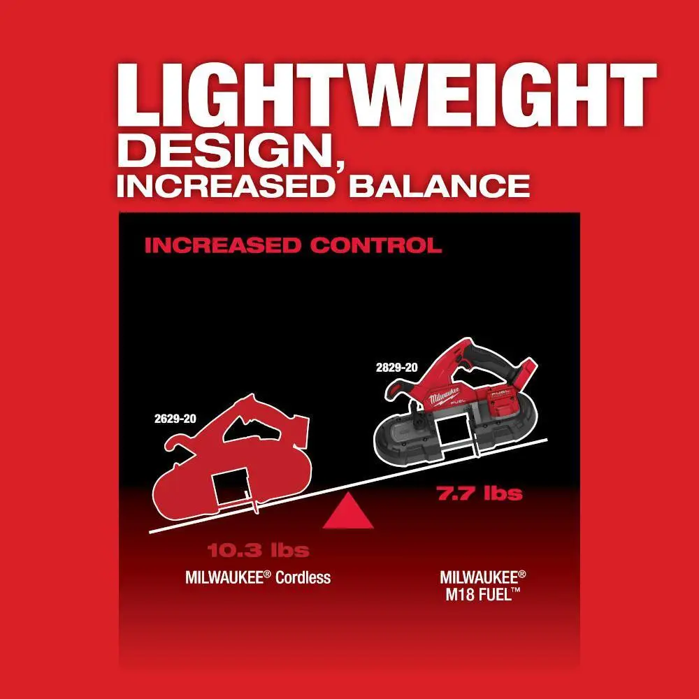 description: The MILWAUKEE M18 FUEL Compact Band Saw offers a light-weight, balanced design with a 3-1/4\depth: 17.9 inheight: 11.6 inwidth: 0.5 inweight: 7.67 lb