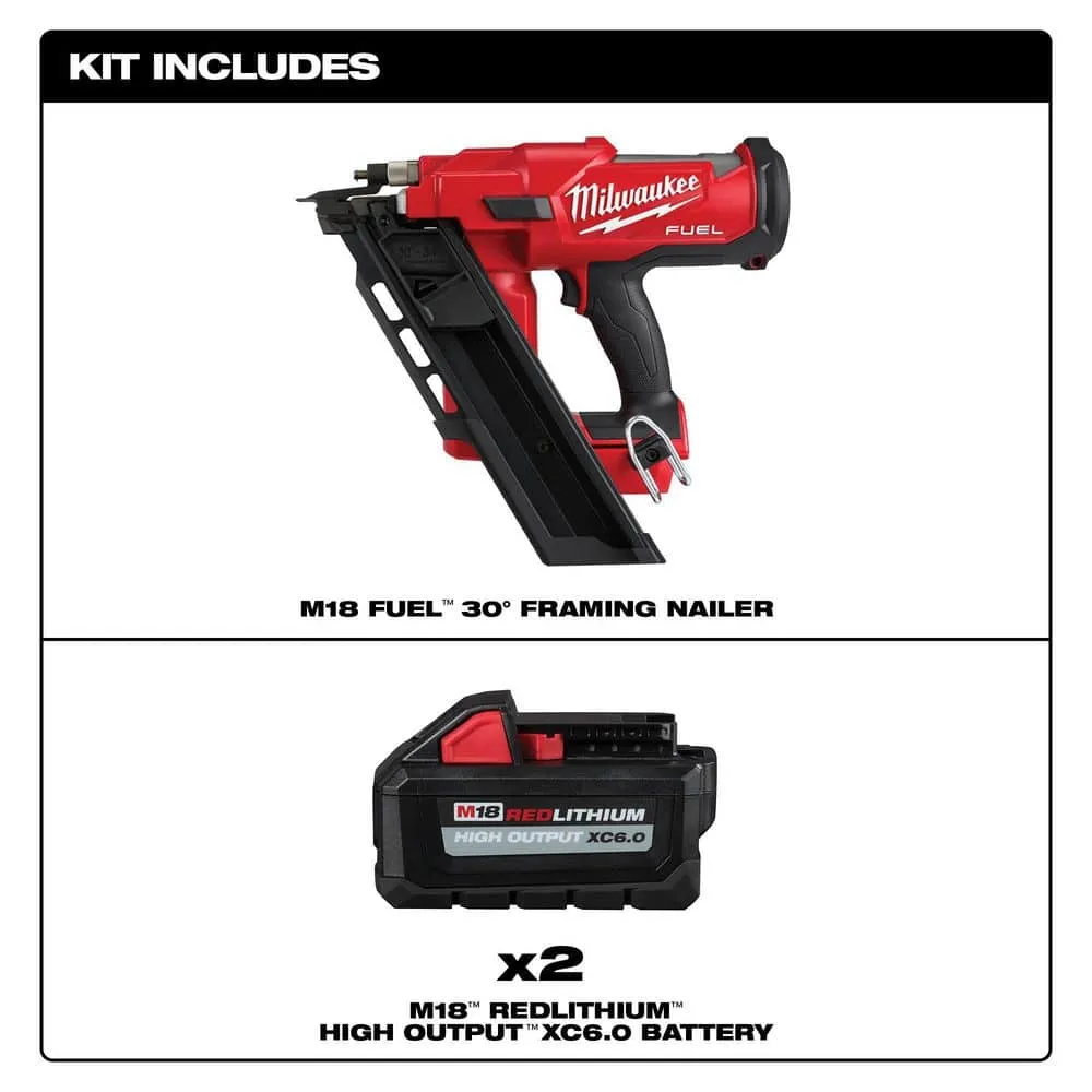 M18 FUEL 3-1/2 in. 18-Volt 30-Degree Lithium-Ion Brushless Cordless Framing Nailer w/2-Pack of 6.0ah Batteries