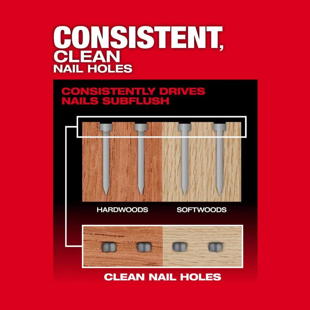 description: The Milwaukee M18 FUEL 18ga Brad Nailer Kit delivers peak productivity at the jobsite, providing users with unmatched nailing performance without the hassle of a compressor and hose. Leveraging a nitrogen air spring mechanism, the finish nailer enables users to consistently sink nails to the proper depth in hard and soft woods while leaving clean nail holes matching the head of the nail. The combination of Milwaukee's POWERSTATE Brushless Motor and REDLINK PLUS Intelligence delivers users with unmatched fire rate with zero ramp-up time keeping them efficient throughout their day. Additionally, the cordless brad nailer operates using Milwaukee's REDLITHIUM Batteries and sealed compressed nitrogen to drive each nail, completely eliminating the cost of gas cartridges and maintenance associated with competitors' nailers. The 18 gauge nailer is compact in size, and very lightweight, providing users with unmatched access into tight spaces and limiting their fatigue throughout their day. The M18 FUEL 18ga Brad nailer delivers the pneumatic performance that professional carpenters and remodelers expect with the freedom and convenience of cordless. In addition to the Brad nailer, this kit includes one M18 REDLITHIUM CP2.0 battery pack, an M18 & M12 Multi-Voltage Charger, a reversible belt hook, and a contractor bag.depth: 11.9 inheight: 11.1 inwidth: 3.3 inweight: 6.3 lb