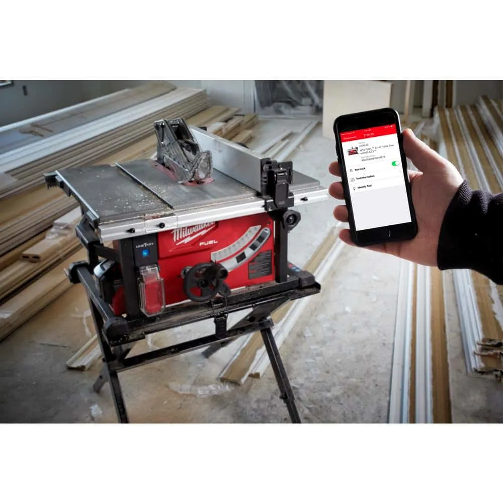 description: Achieve power and performance with thisMilwaukee cordless m18 fuel 8-1/4in. Table saw. Features include power of a 15 amp corded saw with 24-1/2in. Of rip capacity and up to 600 in-ft of cutting per charge. Powerstate brushless motor was built for m18 fuel 8-1/4in. Table saw. This is for professional carpenters, remodelers, and general contractors in any jobsite condition. Features include one-key smart technology that enables wireless tool connectivity to smart devices including smartphones and tablets. Get ability to track and manage your tool's performance and location with built-in technology. Integrated tool tracking provides full visibility to how and where tools are being used across your network of jobs and users within a 100 ft range of your smart device.Milwaukee folding table saw stand is designed to be used withMilwaukee m18 fuel 8-1/4 table saw with one-key (model 2736). Portable folding stand features all steel construction to handle conditions of a jobsite. Its compact, lightweight design allows for easy transportation and storage. A quick attach latching system keeps saw locked onto stand when in use and easily detaches once you are done. Includes quick attaching latch system and adjustableft..depth: 22 inheight: 12 inwidth: 22.5 inweight: 44.9 lb
