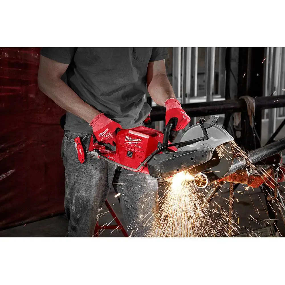 description: The Milwaukee M18 FUEL 9 in. Cut Off Saw with ONE KEY is an extremely versatile solution for cutting a large variety of materials. The M18 FUEL 9 in. Cut Off Saw runs on Milwaukee's M18 REDLITHIUM batteries instead of using gas like most traditional cut off saws. This saw delivers the Power To Cut Reinforced Concrete as well as a large variety of other metal and masonry materials. It delivers this performance while still being Up To 50% Lighter Than Gas saws that dominate the market today. By utilizing Milwaukee's M18 REDLITHIUM HIGH OUTPUT HD12.0 Battery, this saw delivers No Gas Headaches. It produces no fumes so it can be used indoors, it starts up instantly, it eliminates the need to mix gas and oil and there is no gas engine maintenance. The battery will also work on any of Milwaukee's other 250+ M18 solutions. The M18 FUEL 9 in. Cut Off Saw also has ONE KEY integrated so users can wirelessly connect the tool with their smartphone to track and manage the tool. The Milwaukee M18 REDLITHIUM high output XC8.0 Battery Pack provides 50% more power and runs 50% cooler vs M18 REDLITHIUM XC battery packs.depth: 25.98 inheight: 12.57 inwidth: 7.64 inweight: 10.41 lb