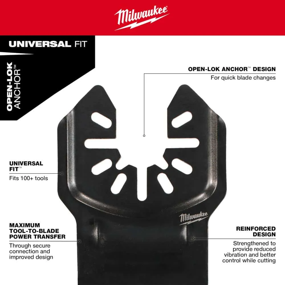 description: The MILWAUKEE? OPEN-LOK? Multi-Tool Blade Variety Kit 8PC provides you with an assortment of blades for multi-material, hardwood, and clean wood cutting applications. TITANIUM CHARGED? Bi-Metal blades have an optimized titanium blend for maximum wear-resistance and up to 15x longer life vs. high carbon steel (HCS) blades. These bi-metal multi-tool blades are ideal for wood with nails, PVC, and drywall. The Triple-Ground Japanese Tooth hardwood blades deliver up to 2X faster cuts than the previous MILWAUKEE? HCS blades and feature a PRO-CURVE? cutting edge for greater control. The Japanese Tooth blades are ideal for fast, clean cuts in hardwood and can also be used in clean wood, PVC, and drywall. The set also includes high carbon steel (HCS) blades designed with aggressive, edge-ground teeth for fast wood cutting. These blades feature a reinforced Universal Fit OPEN-LOK? anchor for better strength & control and allow for quick blade changes across 100+ multi-tools. Not compatible with Starlock tools. The set is organized in a hard case for storage.