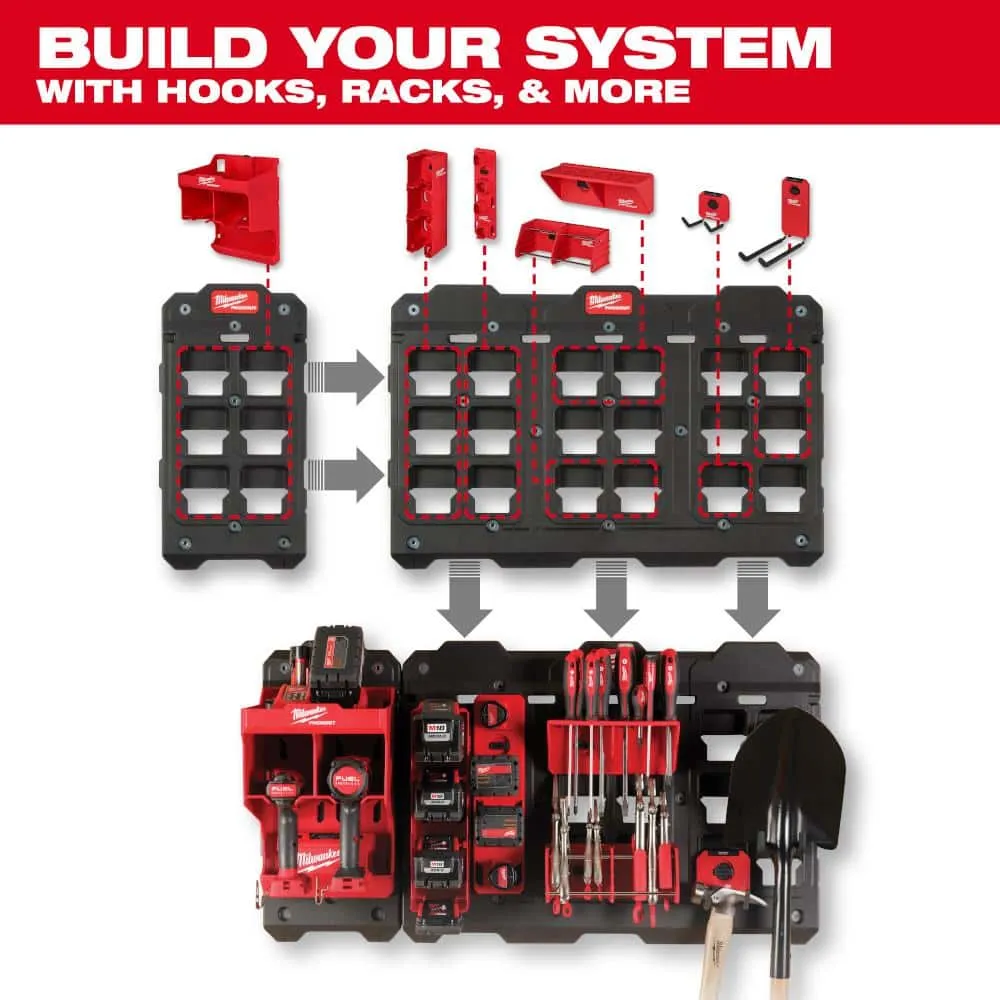 description: Our PACKOUT Large Wall Plate features Quick-Alignment Tabs to make installing rows and columns of multiple wall plates easier. This Large Wall Plate is constructed with Metal Reinforced Mounting Points and impact-resistant polymers that ensure secure mounting in shop, transit, and site environments. Our Large Wall Plate has a 150lbs weight capacity when mounted in the shop, and a 75lbs when mounted in vehicles. As part of the PACKOUT Modular Storage System, the PACKOUT Large Wall Plate allows you to customize your storage system and keep your storage solutions organized. MILWAUKEE PACKOUT is the industry's most versatile and durable modular storage system.height: 20 inwidth: 30.75 in