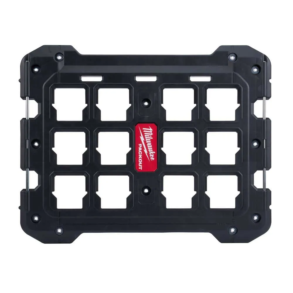 description: The Milwaukee PACKOUT Modular Storage System is the industry's most durable and versatile storage system. The PACKOUT Mounting Plate is constructed with impact resistant polymers, providing users with up to a 100 lbs. weight capacity when mounted to the floor and 50 lbs. when mounted to walls. Metal reinforced mounting holes enable users to securely fasten the Mounting Plate to most surfaces, while metal reinforced tie-down points help users to secure job site supplies to the Mounting Plate. The PACKOUT Modular Storage System allows users to customize and build their storage system to easily transport and organize your tools and accessories.depth: 23.425 inheight: 1.142 inwidth: 18.425 in