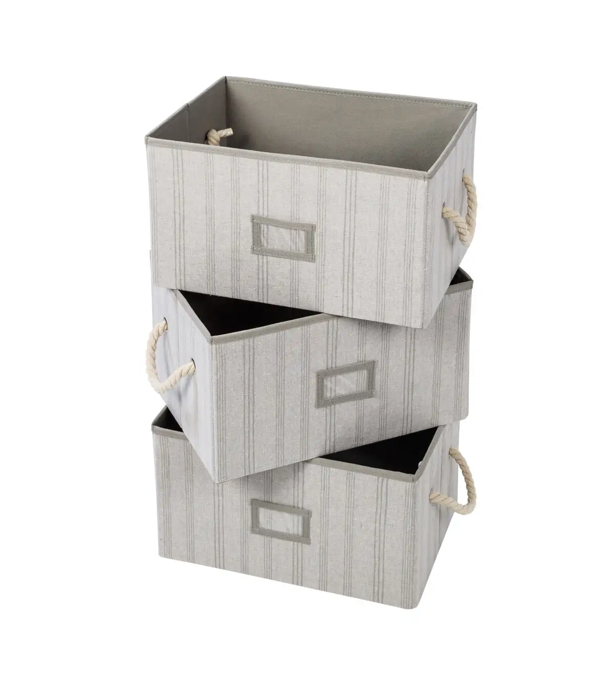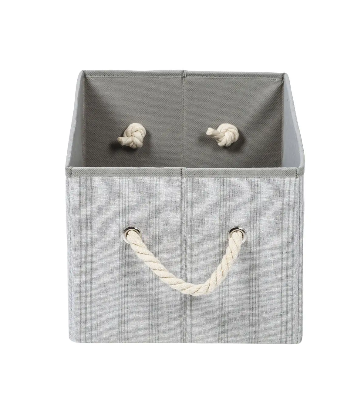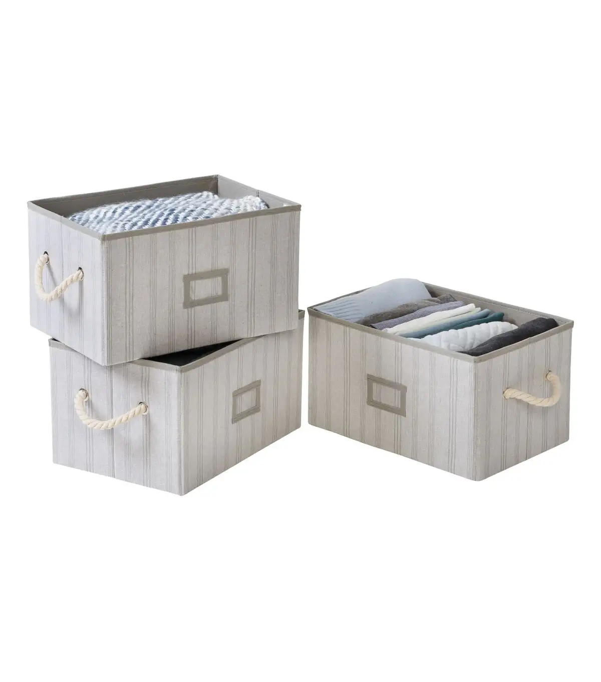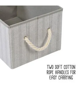 These versatile, large storage bins are perfect for storing clothing, bags, bathing supplies, towels, cleaning supplies, magazines, etc. While large, they are also the perfect size to store on shelves and/or in closets, but also look good and can be left out in the bedroom, bathroom or laundry room. Strong, durable fabric holds up to heavy loads and cotton rope handles allow for easy carrying of bins from room to room.