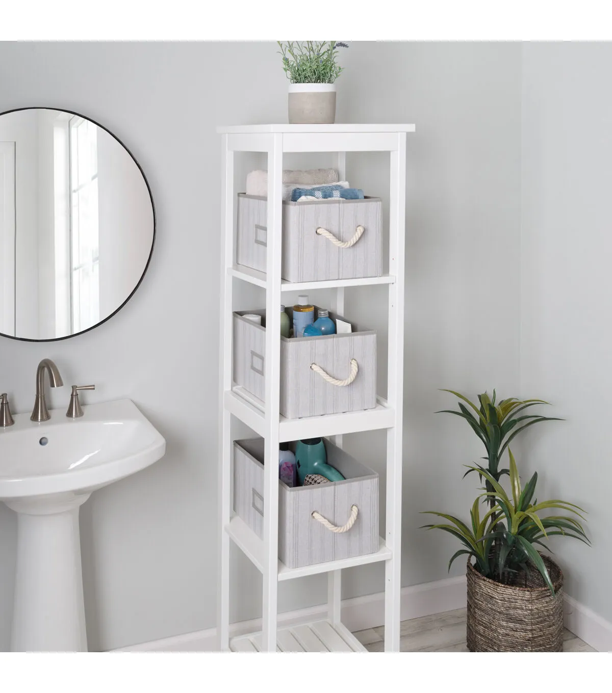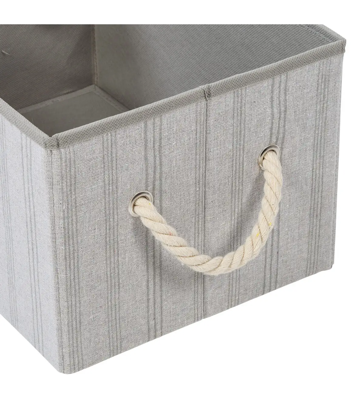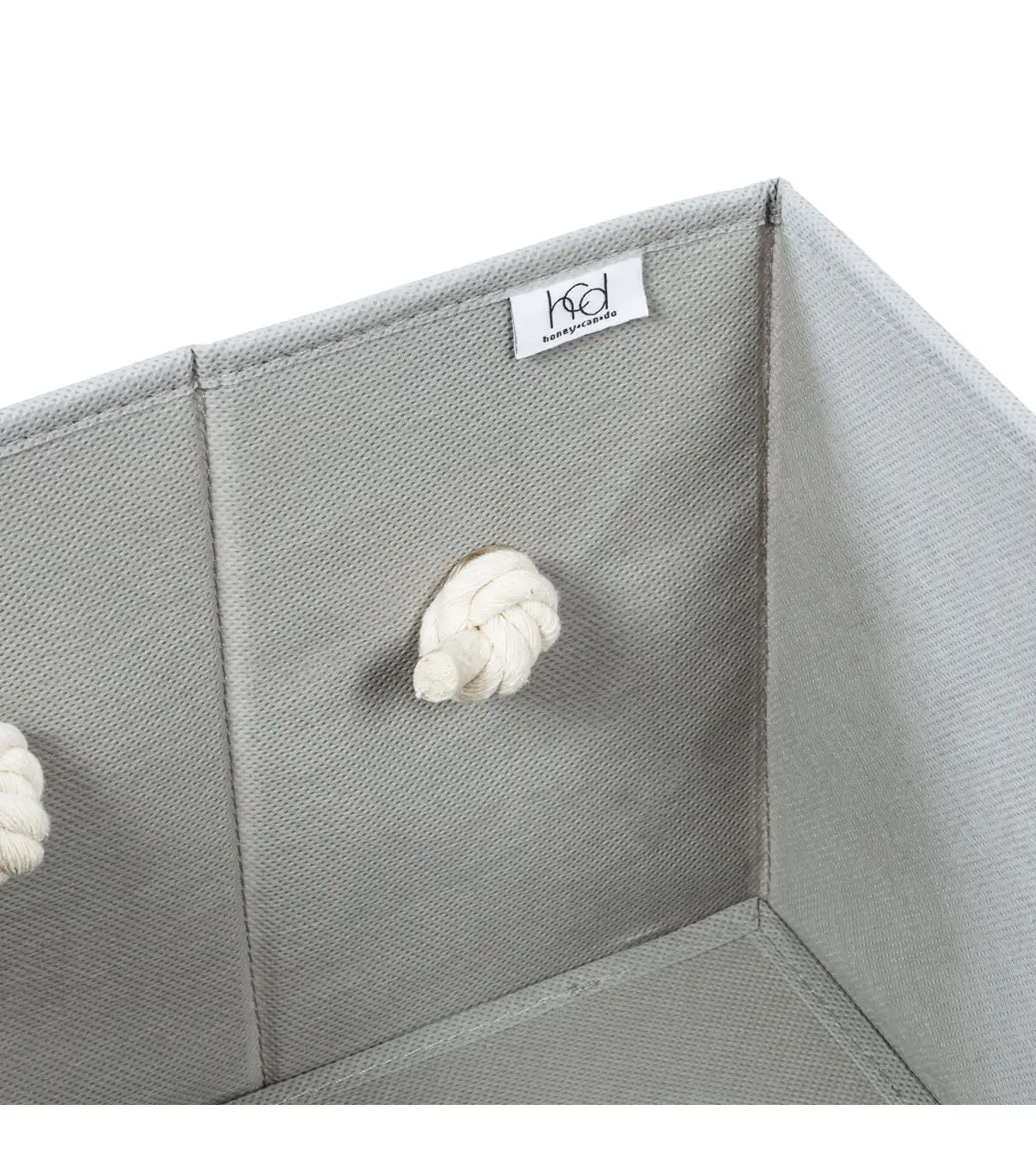 These versatile, large storage bins are perfect for storing clothing, bags, bathing supplies, towels, cleaning supplies, magazines, etc. While large, they are also the perfect size to store on shelves and/or in closets, but also look good and can be left out in the bedroom, bathroom or laundry room. Strong, durable fabric holds up to heavy loads and cotton rope handles allow for easy carrying of bins from room to room.