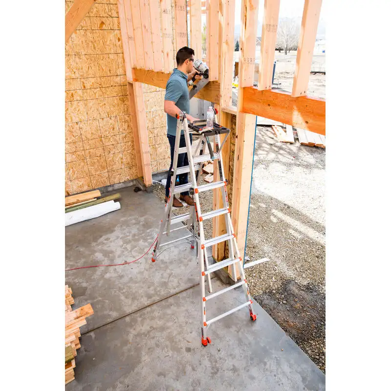 The Project Tray™ is a multi-use accessory designed for your multi-position ladder from Little Giant Ladder Systems®. The Project Tray™ rests securely on your ladder’s rungs and acts as the perfect tool tray while you work. The grooves and slots hold almost any tool you will need, including hammers, drills, screwdrivers and power cords. It even has a place to hold your paint can. The magnetic tray holds screws and nails, so you won’t have to worry about losing them. The Project Tray is rated to hold up to 25 lbs. and is compatible with your Little Giant® multi-position ladder.
