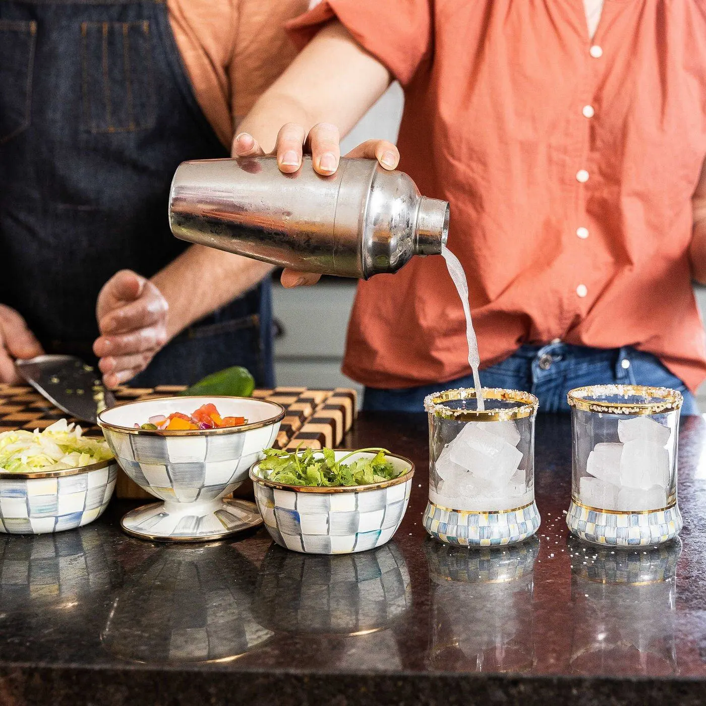 For masters of mise en place, our Sterling Check Pinch Bowl makes prep work a stylish snap. With its just-right size and our grey and white checked pattern, this petite enamel pot is equally charming when brimming with paper clips in a home office or lemon wedges on the wet bar. The heavy-gauge steel underbody is glazed with hand-painted, color-dragged grey checks that are similar in theme to our popular Courtly Check? and rimmed in bronzed stainless steel.